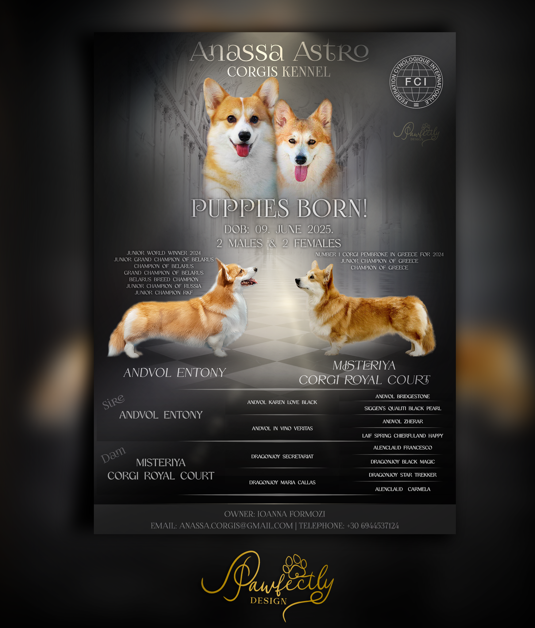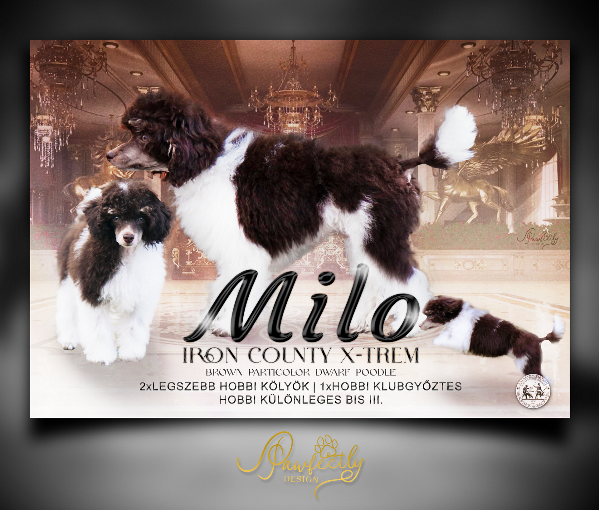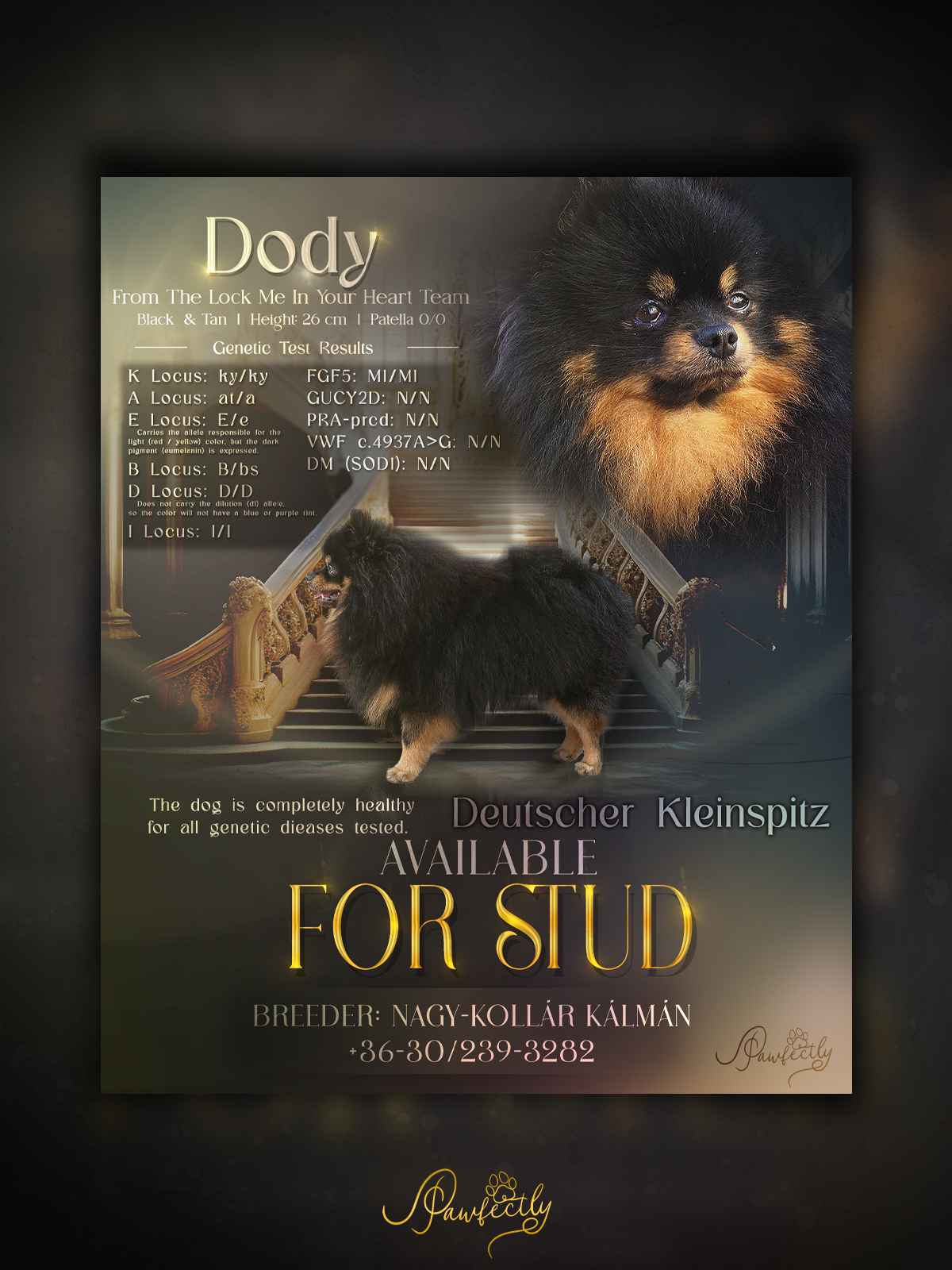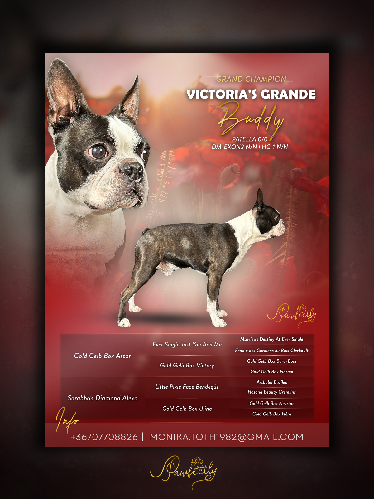 - Elérhetőség, kennel név ami megjelenik a plakáton